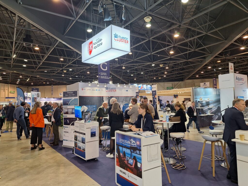 Notre stand collectif, idéalement situé, réunissait l’Atlantic Cluster et le Sea Pole La Rochelle sous les couleurs de la Région Nouvelle-Aquitaine. Cet emplacement stratégique nous a permis de bénéficier de nombreuses visites.